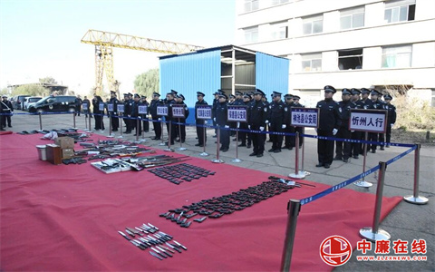 10月28日上午10时,山西省忻州市公安局对各类案件中收缴的非法枪支和仿真枪、驽、管制刀具以及报废的公务用枪进行了集中销毁。忻州市公安局党委委员、副局长杨德华出席销毁活动并讲话。