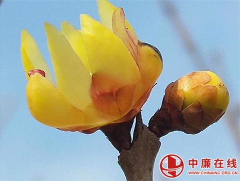 迈入鼠年的脚步越来越近,山东省郯城县经济开发区园林内迎春腊梅竞相开放,花朵傲寒挺立俏枝头,婀娜多姿,引人注目,为喜迎春节增添了美景。(高军)