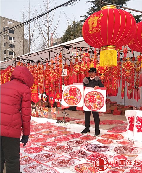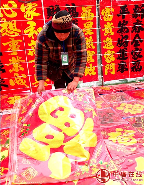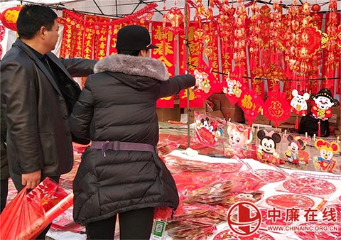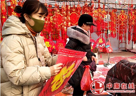 中廉在线1月23日讯:1月22日(农历腊月28日),山东省郯城县古镇马头迈入金鼠年最后一个大集,忙年货的农民正在集市上请“福”字。