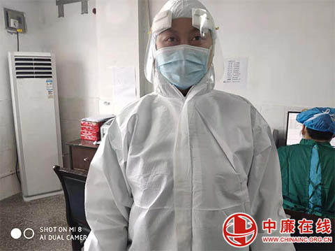 邵帅是安徽省蒙城县中医院的一名护士,目前在蒙城县中医院新冠肺炎确诊患者、疑似患者密切接触者隔离观察区感染科工作。自1月30日进入隔离病区工作以来,邵帅将这里当成了第二个家。 提到隔离病区内的生活,她说:“很累,但是很充实。和日常工作不同,在这里我们不仅是护士,也是留观人员的大管家,要照顾他们的衣食住行,还要关注他们的心理健康。现在想想,不光是我们累,我们医院的志愿者们每天打扫、消杀病区,常常工作到凌晨两三点,他们其实比我们更累、更辛苦。” 邵帅申请来到隔离病区可谓是“几番周折”,她先是在行管后勤签了请战书,后来担心上不了一线,又去到护理部请愿,胸前的党徽时刻提醒着她:你是一名党员,人民需要的地方就是你该去的战场!
