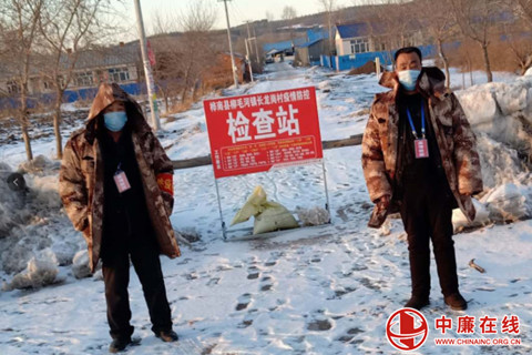 图为东柳村贫困户王宝成、辛德伟在卡点执勤