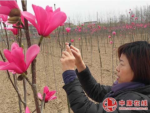 “娇红一号”是红花玉兰中一个最新品种,2012年通过国家林业局新品种办公室正式授权。为我国木兰科植物中第一个内外纯红的玉兰新品种,具有极高的观赏价值。它的花开与当地的白玉兰、紫玉兰相比十分地抢眼,花色绚丽夺目,深红热烈,景色迷人,深受人们的喜爱和赞赏,成为苗木市场的“抢手货”。山东省郯城县马头镇枫华正茂种植农民专业合作社吴清银,抓住信息资源优势,大胆尝试栽植新品种,通过三年时间种植培育,已熟练掌握了“娇红一号”玉兰的扦插、接穗等一整套成熟的种苗繁育技术。特别是在适应异地自然环境、成活率和生长速度等方面呈现出无可比拟的优势。目前,已经发展稀、奇、特等绿化苗木200多亩。