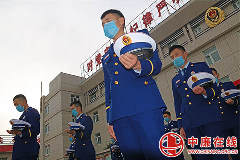 新疆巩留森林消防大队为悼念英雄,下半旗志哀,举行哀悼仪式。(刘杰 张鑫鹏)