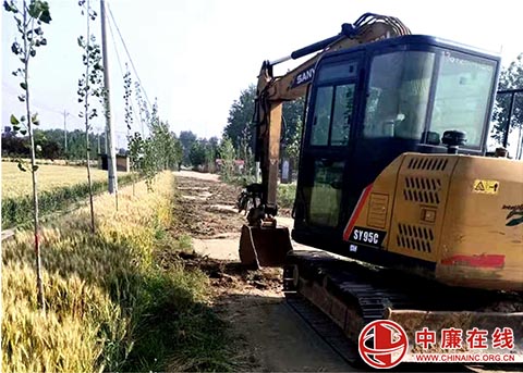 中廉在线5月28日讯:5月26日,山东省郯城县马头镇马南社区小刘庄村正在组织挖掘机械在修整农田道路。至此,在三夏生产来临之际,郯城县马头镇10个社区89个自然村街全面集中开展了整修农田道路活动,为农民群众提供根本的生产保障。(高军)