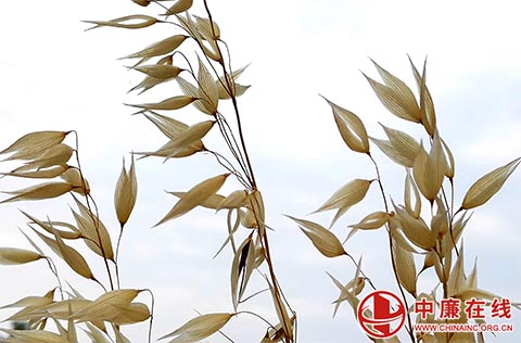 中廉在线6月1日讯:麦收季节,金黄的野燕麦开花了。在山东省郯城县马头镇采莲湖湖片的道路两旁,微风吹来轻轻摇摆,野燕麦花展现出多姿多彩的美姿。