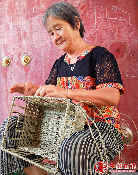 中廉在线9月11日讯:9月9日,山东省郯城县马头镇花园社区益民村,这位姓王的老大娘正认真地编织方筐。