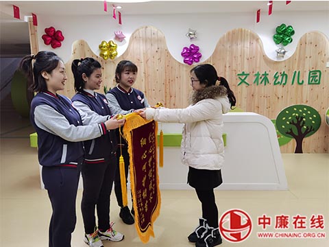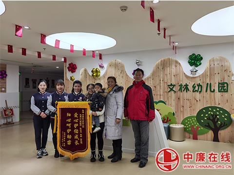 “爱心护佑成长,细心呵护幼苗。”11月24日一大早,橙子的妈妈、奶奶、爷爷将一面鲜红的锦旗送到渭城区文林幼儿园,感激幼儿园为孩子们提供的良好环境,感恩星星小二班恩师们的辛勤付出。(成伟 陈莹)