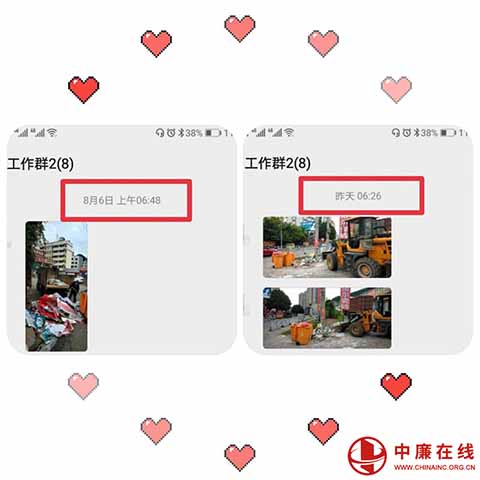 有时候早上6点多,还没开始上班,陈世金同志就早早到了整治现场,开始了一天的人居环境整治工作。有时候周末休息日,陈世金同志还自愿加班,及时处理村里存在的卫生问题。