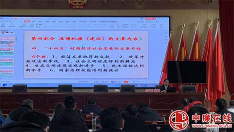 在谈到“全会的总体情况”时,胡遵远特别提示大家要准确把握规划《建议》的鲜明特征和习近平总书记重要讲话的深远意义;在谈到“建成小康社会取得的决定性成就”时,胡遵远不仅详细地介绍了我国“十三五”时期取得的十大历史成就,而且具体地介绍了金寨县“十三五”时期取得的显著成绩。他说,一滴水可以反映太阳的光辉,我们金寨县的“十三五”发展充分说明了这一切。接着,他又从数字指标和具体工作两个方面向大家作了具体的介绍。他说,预计到2020年底,全县地区生产总值将达200亿元,年均增长8.2%,超额完成“十三五”规划目标……全县“十三五”规划的45项主要指项,除极少数指标受统计体系调整、灾情疫情影响欠账外,其余主要指标全面完成或超额完成。在具体工作上,他主要讲述了这样七个方面的巨大成就:一是脱贫攻坚取得决定性胜利,二是产业培育迈出坚实步伐,三是城乡发展融合推进,四是基础建设不断完善,五是生态文明建设保持领先位置,六是改革创新活力得到充分释放,七是基本公共服务水平得到全面提升。