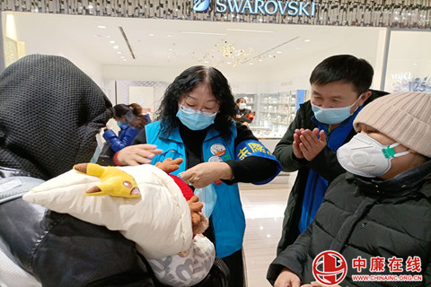 在人员密集场所只要见到没戴口罩的路人,志愿者们都会过去主动出击打招呼,然后像唠家常一样,你一言、我一语地和这些没戴口罩的市民聊疫情,聊个人卫生问题。