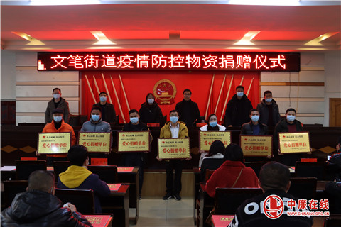 1月26日,文笔街道举行爱心企业助力疫情防控捐赠仪式,街道党工委、办事处、人大工委主要负责人出席仪式。各村及社区负责人、爱心企业代表、疫情防控志愿者参加捐赠仪式,共收到捐赠防护口罩12万个,用于支援抗疫一线工作者和志愿者,助力打赢疫情保卫战。