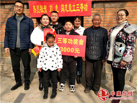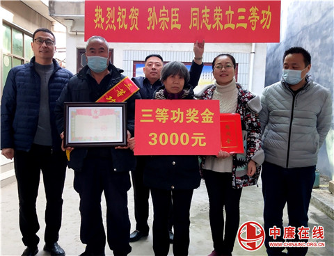 2月3日,山东省郯城县马头籍的4名优秀儿女在部队立功,父母在家中隆重受奖。至此,去年在军营服役56名郯城籍官兵分别荣立二等功、三等功,其家庭父母近日全部获得了登门奖励,送去了立功喜报和慰问信,在全社会赢造出崇尚功臣的良好氛围。