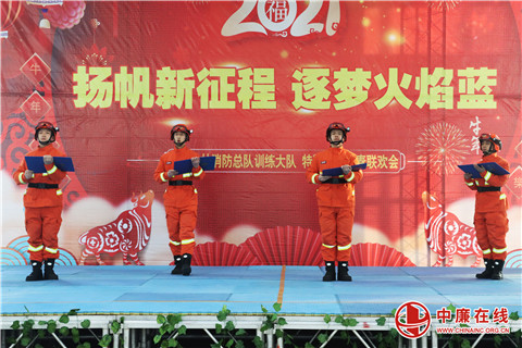 律转鸿钧,满载辉煌成绩的2020即将过去,新元肇启,充满希望与挑战的2021悄然来临。2月9日,新疆森林总队训练大队训练馆笑语盈盈、欢声阵阵,洋溢着如春的暖意和喜庆的节日气氛。新疆森林消防总队驻乌单位指战员及指战员家属300余人欢聚一堂,共度新春佳节。
