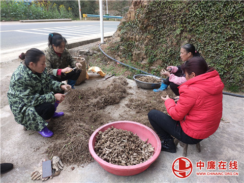 在瑶里村合作社基地,村民们有的帮吴茱萸修剪枝条、追肥,有的忙着采收白芨,忙得不亦乐乎。趁这个好天气采白芨,洗和晾嗮都非常适合,保持新鲜能卖个好价钱,白芨现在的市场价是15元/斤,我们采收完16亩,按照一亩收400斤,16亩就是6400斤,这样算下来我们也有96000元的收入,瑶里合作社负责人赵学孝一边捡装一边细数道。