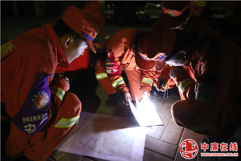 训练开始前,大队提前安排人员在林区内设置目标点,并以指战员在设置目标点过程中遇险为背景,迅速出动进行救援。在接到救援命令后,所有人员迅速集结,按照预案全面展开救援行动,指战员们积极参与、密切配合,利用地图、GPS、夜视仪、担架等现有装备,在最短的时间内找到受伤队员,进行固定包扎后护送下山。