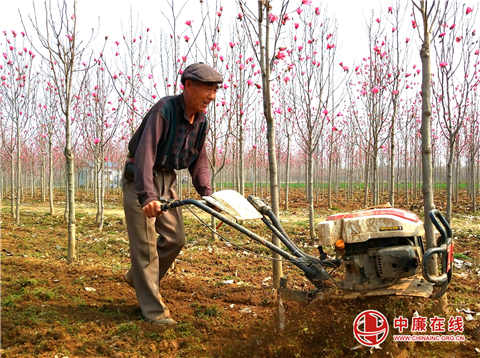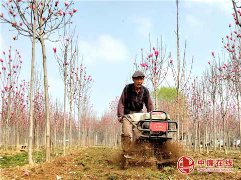 3月12日,采莲湖湖片农民正高兴地在娇红一号苗木基地耕田
