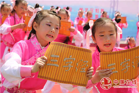 标题:(诵中华诗词 做博学少年)2017.位于青海省西宁市城北区城郊的博雅小学举办诵中华诗词,农村孩子政策表演三字经。