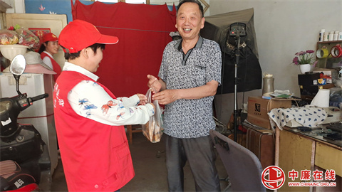 有人用手机记录下了这一刻:志愿者们提着粽子,穿街走巷,行走在每一个困难家庭和独居老人家中,跳跃的红色成了这个端午节最美丽的风景!(陈会敏 河南省舞钢市矿建街道办事处)
