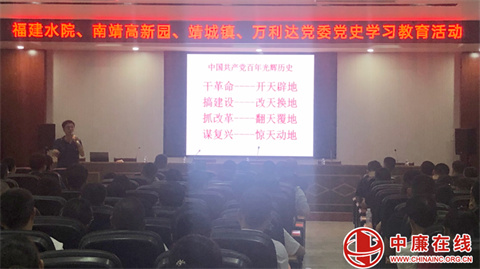 7月5日上午,福建水院、南靖高新园、靖城镇联合万利达党委在万利达党群活动中心开展党史学习教育专题宣讲会。会上,特邀漳州市委新时代宣讲师、南靖县委党校特聘教师刘越中老师作宣讲报告。