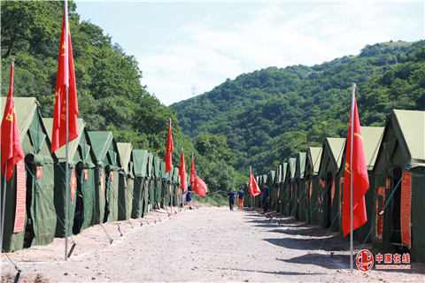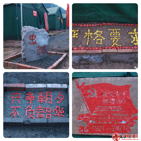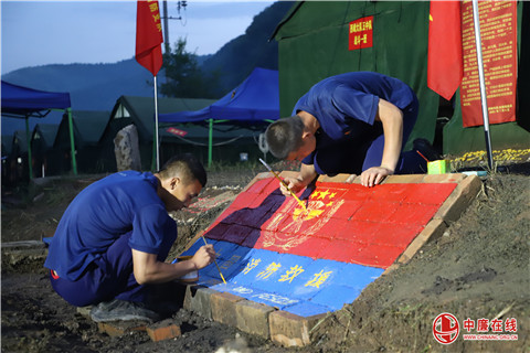 一场暴雨过后,土谷堆林场郁郁葱葱,黑夜的笼罩着使这片住着300多名森林消防指战员的大山显得更加神秘。一面印着平凉市森林消防支队的旗子牢固的插在帐篷入口,老班长用三轮车推来了一车砖,指导员站在横幅居中的位置摆手示意再往右一点,一名胳膊上沾满油漆的实习消防员提着油油漆桶到处涂鸦,一名浑身肌肉的指战员卷起裤管倚在帐篷外拿着一瓶云南白药。昨天砌好的锅灶旁三两个影子时不时的加着柴火,此时炊事班的后勤人员已经再准备明天早上的大米南瓜粥,野战音响在党旗下播放着没有共产党就没有新中国.....从天空的眼睛里,一群大自然的搬运工到处忙活,从大地的眼睛里,看到的是一群“蓝朋友”辛勤劳作、书写忠诚。下面就跟随小编的镜头走进“蓝朋友”的野外驻训场,感受这场创制盛宴。(刘凯 甘肃省森林消防总队平凉支队西峰大队)