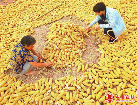 9月29日,山东省郯城县马头镇采莲湖社区高楼村村民正在晾晒收获的玉米。农民陆续进入金秋收获季节,繁忙的景象勾画出一幅遍地金黄的美丽图画,这又是一个丰收年。(高军)