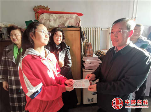 在了解到这一情况后,内蒙古乌兰察布市察右中旗大滩乡党委心系王迎喜老同志一家的生活情况,并始终秉持为群众办实事、解难题的服务态度,由乡党委书记李斌,乡党委委员、人武部长冯志刚代表全乡关心、关怀王迎喜及其孙女王敏学习生活的父老乡亲,立即行动、积极动员,通过不懈的努力,最终经多方协调、申请,帮助王敏通过事实孤儿认定,即从2022年1月起,王敏将每月享受到事实孤儿基本生活补贴1149元。同时,大滩乡还为王敏捐助了助学资金1000元以及相关学习生活用品,鼓励王敏继续奋勇向前,以积极乐观的心态迎接每一天的新生活。