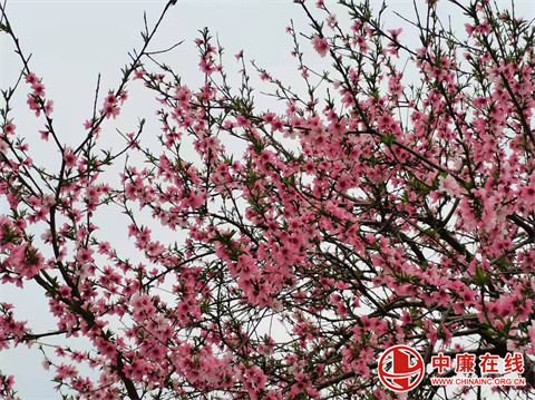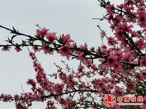 3月31日,安徽省蒙城县马集中学校园内,一棵桃树,嫩芽初绽,一树红花,点点绿,片片红,相挽相携,妙趣横生。春风拂来,片片花瓣飘舞,芳香四溢,醉了春风。(葛新胜)