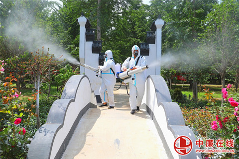 随着天气炎热,蚊虫孳生众多,为給大家提供方便、创造良好卫生环境,曾经常为村民服务的郯城县马头镇慈善爱心协会志愿者们,在民主街银杏公园“开园”之际,便带着消杀药品和背着沉重的自动喷雾器义务到公园进行蚊虫消杀,不仅到处都留下了志愿者美丽的身影,而且成为公园内有一道风景。(山东省郯城县马头镇党委 高军 马圣秋 摄影)