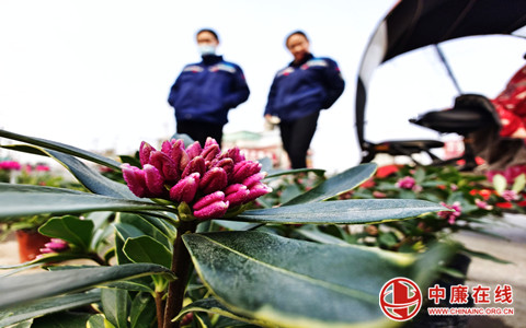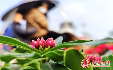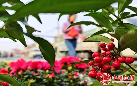 2月7日,气温回暖。在山东省郯城县小马头街头集市的花市上,这位农家女正在选购鲜花来扮靓家庭幸福生活。