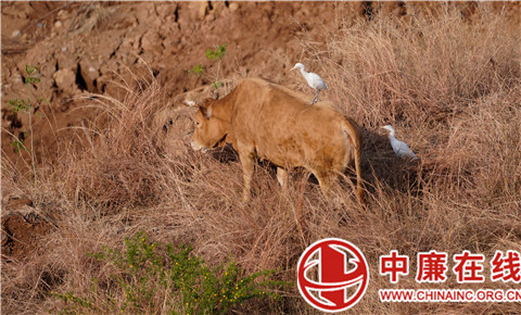 近日,在云南省巧家县的金沙江岸出现了有趣的一幕:两只白鹭和几头牛“相偎相依”,不离不弃,白鹭时而给牛捕捉身上的小虫,时而在牛身边翩翩起舞,牛则悠然自得吃着草。