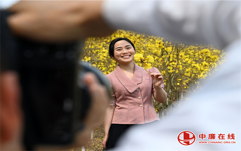 清明临近,四川省内江市东兴区郭北镇南岸社区3000余株黄花风铃木迎春绽放,漂亮的黄色花朵吸引众多游人前来踏青赏花,乐享春日时光。(内江市东兴区委宣传部 兰自涛)