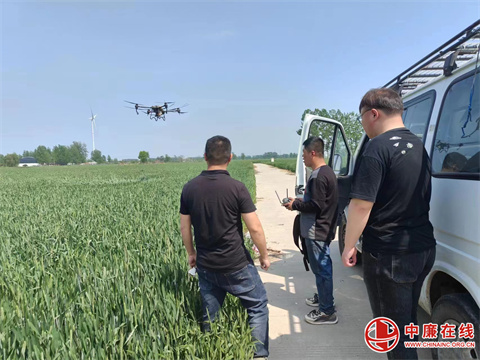 4月18日,安徽省蒙城县马集镇三关村组织植保人员利用无人机开展小麦“一喷三防”工作。