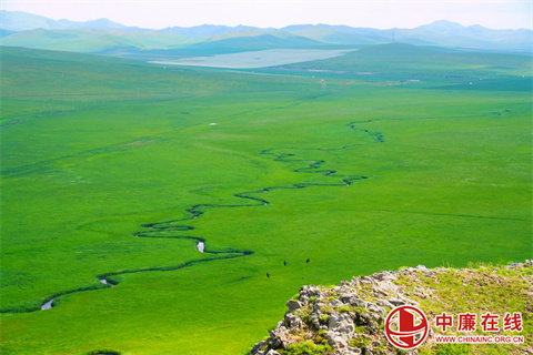盘山而上,摇下车窗玻璃,这里显然是刚下过雨,清凉伴着青草散发的芬芳扑面而来,我贪婪的呼吸着、欣赏着,陶醉在绿色的海洋里。在近乎直角的铁力哈达山沿坡而上,我们观赏着这险峻的风光,向上看是万尺高空蓝天白云,向下看是霍林河九曲十八弯的壮观,我们连连感叹,或许正是这个近乎隔绝陈嚣的原因,才能保留住如此天人合一的景色。