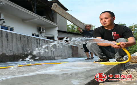 7月18日,四川省内江市东兴区新江街道新江社区,施工人员冒着酷暑加班加点推进便民水泥公路项目进度。