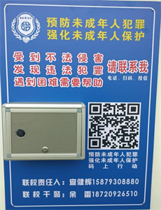 最后,挂点结对帮扶小组将结对帮扶信息以公开栏形式悬挂在学校门口显目位置,以方便师生及家长联系,畅通预防未成年人犯罪和强化未成年人保护的信息渠道。(叶忠坚)