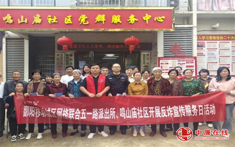 为进一步筑牢居民财产防火墙,江西省上饶市鄱阳县饶州街道鸣山庙社区新时代文明实践站主动担当作为,积极开展“我为群众办实事”实践活动。4月24日下午,鸣山庙社区联合五一路派出所、鄱阳移动城区网格开展反电信诈骗宣传活动。