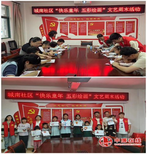城南社区组织开展了“快乐童年·五彩绘画”文艺周末活动。绘画中,孩子们既动脑又动手,各项能力并进提升。本次绘画活动,让孩子们在绘画的过程中,提高了孩子们的审美趣味和想象力,丰富辖区儿童的精神文化生活。