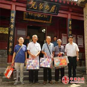 杨家卿回到家乡第一站,便直奔今年七十八岁的王建邦先生住处,同行的本村老一代中医学家杨医亚的长子杨光屹,1968年从北京66中毕业,作为知青下放到原籍任民办教师。他们同属一个生产队,两家相距不出50米,两位年近八旬的老人多年未见自然百感交集。王建邦先生上世纪70年代末考入开封师范学院中文系学习,具有扎实的文学理论功底,是安乐寨村地道的文化人。几十年来,村里上报的各类材料,几乎全是出自他手。被评为“全国服务农民服务基层文化建设先进集体”的兄弟书屋和其它国家、省、市、县所需材料都由他执笔。《司马懿得胜鼓》《司马懿传说》《杨四将军传说》等省、市级非物质文化遗产及各类申报材料是他撰写。近年来他老当益壮,学习掌握了自媒体,利用手机微信、抖音等现代科技,不遗余力宣传司马懿故里的经济社会、历史文化、风土人情和各类先进典型,记录宣传村里村外的大事喜事和发展变化,受到了乡亲们的广泛好评。可以说,这些年安乐寨村在外文化影响,王建邦付出的贡献功不可没。他还经常为司马故里展览馆、兄弟书屋、村史馆、杨碾旧居等作义务讲解员,前往参观的各级领导、专家和职工群众,对他给予很高的评价。出于对这位文化长者的敬重之意,杨家卿特向其赠送了鲜花、著作和礼物。84岁的王建堂老师,曾在温县几所中学任数学老师,由于近期患脑梗,行动不变,杨家卿带着礼品到家中登门拜看。王建堂虽然语言迟缓,反应不大灵敏,但看到五十多年前的学生时还能直呼其名。90高龄的残疾人王京大,目前是村中男性年龄最大者之一。他在六七岁时,右腿截肢,但他身残志不残,靠自学成才,具有多种文化爱好和特长。上世纪六七十年代,他在自家培养了村里不少裁缝,对书法、绘画、算盘、蔬菜栽培等样样皆能手,对村里的文化掌故、历史变迁、人事更迭,如数家珍。杨家卿向他赠送了书籍,他还对杨家卿曾为他办理残疾证,与市县有关部门沟通解决深表谢意。杨碾旧居为河南省传统村落保护单位一一安乐寨九号院,这里被乡贤誉为“小院不大 处处文化”。杨家卿的长兄、退休老职工、荣获“全国最美家庭”首席代表杨家风默默的守护20多年。院里两棵百年石榴树、北方栾树列入国家林业部门认定的三级古树名木,飘香的桂花和翠绿茁壮的刚竹令人陶醉。89岁高龄的杨树茂老师在院里向离开村子50多年的杨光屹介绍,杨碾是我们村里古时文化人的突出代表,这一族人辈辈都出有人才。他还当众说到,我教家卿语文课时,他的成绩每次考试都是班里和年级第一名。现在杨碾旧居与兄弟书屋均为省保单位、省家风家教示范基地,可谓双璧辉映、珠联璧合,成为安乐寨村的重要文化标识。