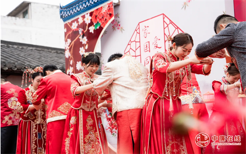 婚礼活动现场,精心设置了猜字谜、糖画制作、投壶、画扇面等游园会活动。热闹的婚礼仪式,丰富的活动内容,新人们不由得纷纷手动点赞。新娘黄女士说道,“这场一生一次的婚礼,比我想象中的还要惊喜、浪漫,这场婚礼很有意义且让人难忘”。(姚雅云、潘栋)