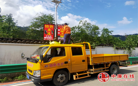 “非标”即非公路标志牌,不仅影响行车视线,还有一定程度上的安全隐患。根据《中华人民共和国道路交通安全法》的相关规定,任何单位和个人不得在公路上擅自设置非公路标志标牌。对此中心路保人员主动与村民进行协调沟通,耐心细致地讲解和宣传相关法律法规,同时,告知当事人及沿线商住户,如有办理涉路许可申请的需求,可以到市交通运输局相关科室按照法定程序和流程,依法办理相关业务,如有其他涉路疑问,可前往或致电三清山公路中心。