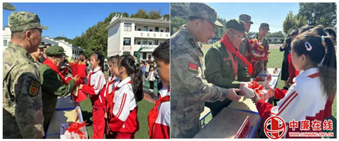 随后,一行人来到必姆中心小学,学生代表为廖焕松老战士敬献红领巾和鲜花,表达对老一辈革命英雄的无限敬仰与感激之情。廖焕松老战士向孩子们赠送书籍《跨过鸭绿江的玉山男儿》,他希望年轻一代能够铭记历史、珍惜和平、努力学习,将来为国家的繁荣昌盛努力奋斗。