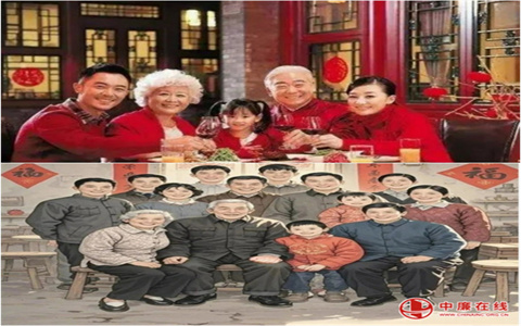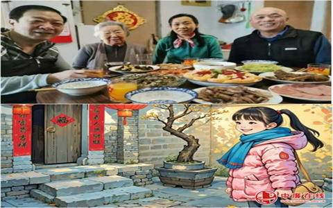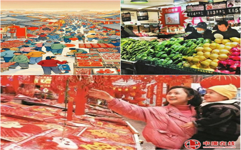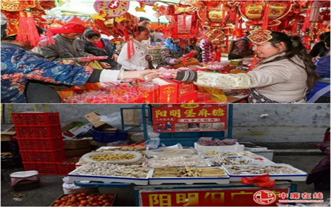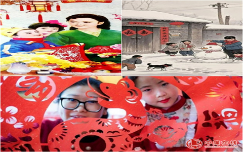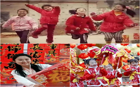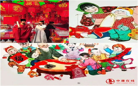 肉饺油糕米酒黄,灯笼对联窗花红。