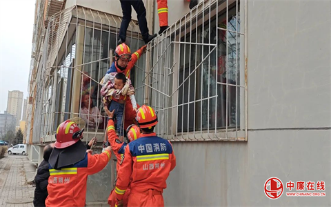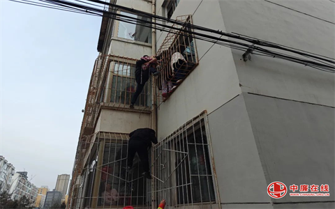 山西省朔州市朔城区一小孩被卡在二楼护窗上