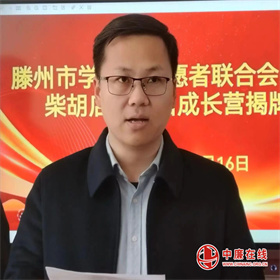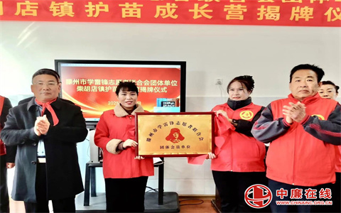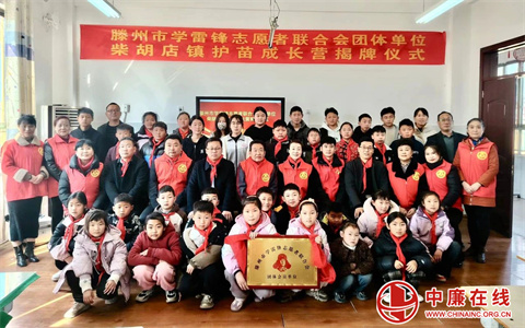 枣庄市学雷锋志愿者联合会副会长、滕州市学雷锋志愿者联合会会长侯志龙、滕州市柴胡店镇学区党委书记、主任颜鹏共同为学雷锋团体会员单位柴胡店镇“最美的遇见”护苗成长营揭牌。