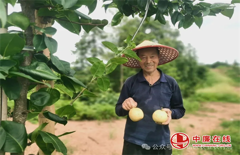 种植户吴吉仕戴着斗笠穿行其间,指尖轻抚这些承载着丰收期许的果实,脸上笑意舒展:“2023年种下的梨苗,今夏初挂果,每棵树上都结了果,这心里头踏实了。预计明年产量能达到3万斤,后年就能进入丰产期。”