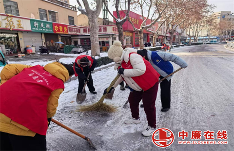 在机械作业的同时,街道干部职工、社区工作者、志愿者及热心居民组成“清雪小分队”,手持铁锹、扫帚等工具,对人行道、小区出入口、公交站台等区域进行人工清扫。在沿街路线,身着红色马甲的志愿者们分工协作,有的铲除残冰,有的撒融雪剂,有的清理路面积水,忙碌的身影成为寒冬里一道温暖的风景线。