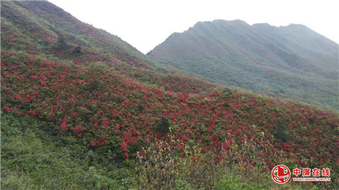 在新宁县八峒瑶山,路边、河边、山上, 一树树、一片片、一山又一山,红艳艳的红杜鹃在四、五月竞相开放,每年的这个时间,笔者与好友,总要走进大瑶山,采风,赏花,特别对晴岚山、界富、九龙、湖南风雨殿风电场、竹阳等地的红杜鹃独有情钟,不仅乐享天然氧吧!而且对漫山的红杜鹃看了又看,手摸、脸亲、鼻闻,总是恋恋不舍,相约来年再会!人间最美四月天,大山游,悦赏八峒瑶山红杜鹃正是时候,朋友赶快行动吧!文明淳朴的瑶乡人民随时欢迎八峒内外游客的到来!(郑远江 刘小飞)