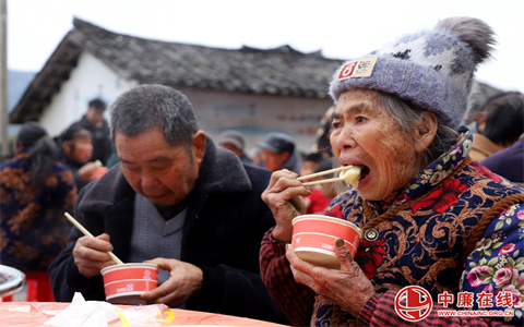 图为村民一起吃饺子