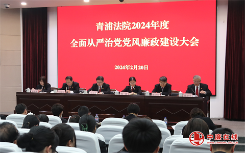 2024年2月20日下午,上海青浦区人民法院召开全面从严治党党风廉政建设大会,院党组书记、院长方正杰出席并作讲话,会议由院党组成员、副院长钱燕主持,院党组班子及全院干警参加会议。