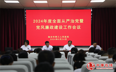5月24日,山西省临汾市第三人民医院召开2024年度全面从严治党暨党风廉政建设工作议,各党支部书记、中层干部、全体党员100余人参加会议,院党委班子出席会议。